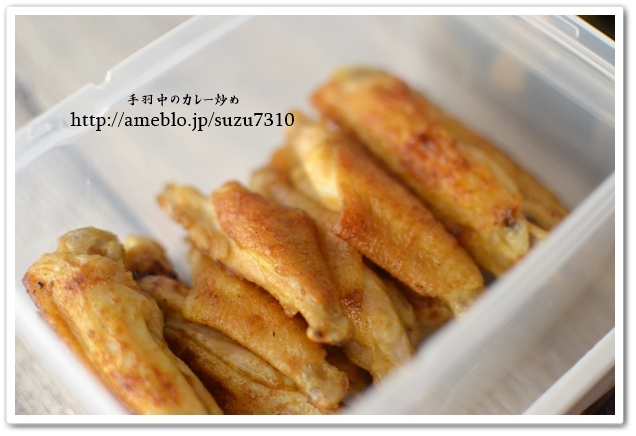 手羽中をこんがり焼き、カレーだれを加え絡めました。