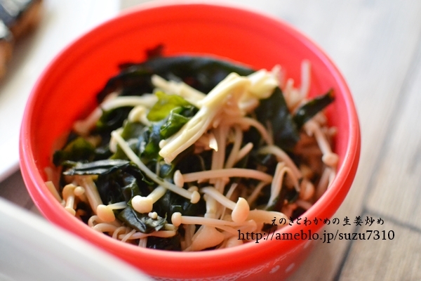 ・えのきとわかめの生姜炒め