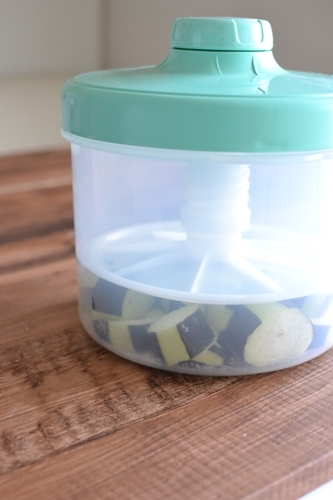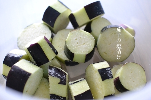 漬け物容器の代用として、大きめのボウルに塩をふった茄子を入れ、