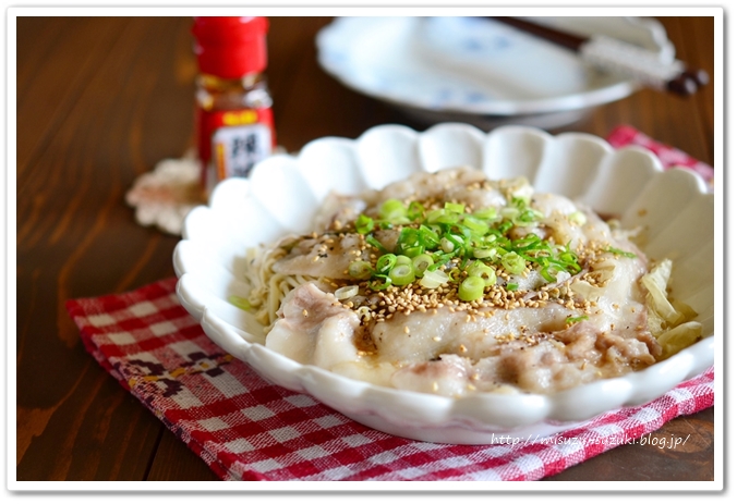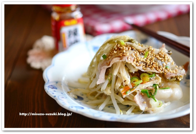 【豚バラ肉ともやしのおぼろ昆布蒸し】