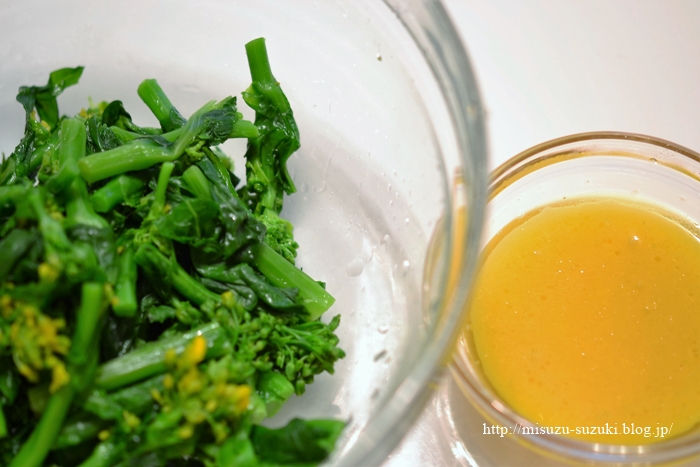 ・菜の花は必ず沸騰したとこへ、茎の固い部分を先に入れ2分程ゆで、
