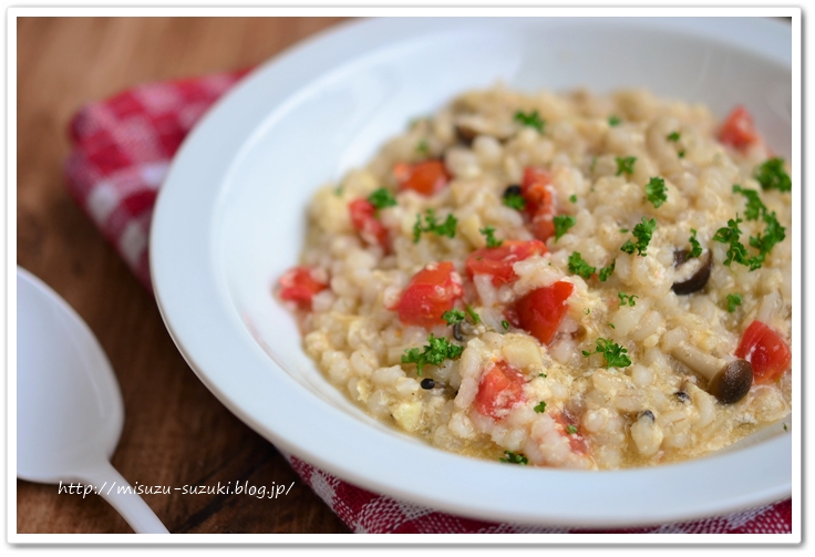 がごめ昆布ときのこのもち麦チーズリゾット by 鈴木美鈴