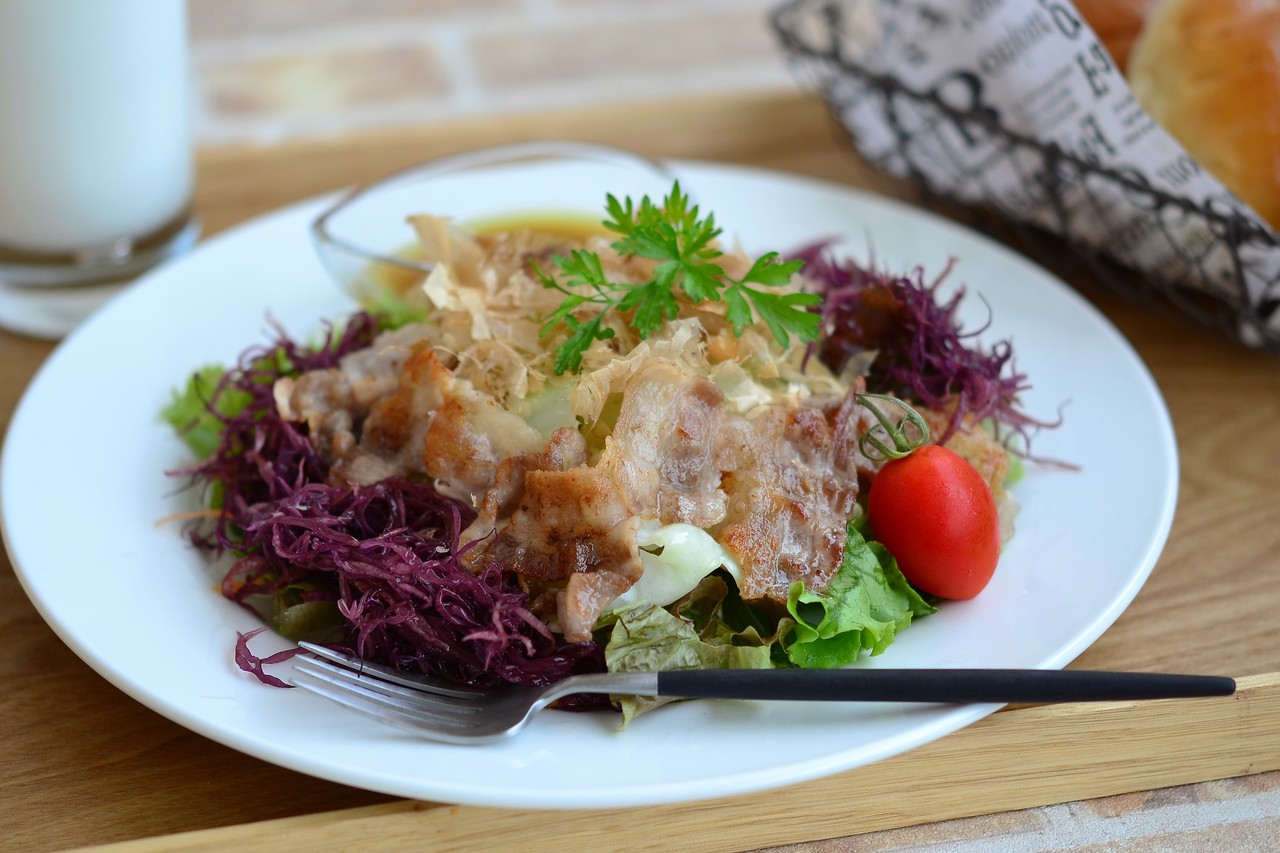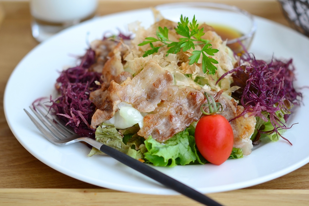 ・豚肉はカリカリになるまで、じっくり焼いて下さい。