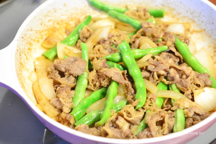 牛薄切り肉のうま味と玉ねぎの甘みが、いんげんと良くあい、