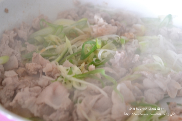 低価な豚こま切れ肉を使い、ビタミンCが豊富な白ねぎ、