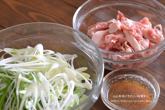 【豚こま切れ肉のねぎ塩炒め】