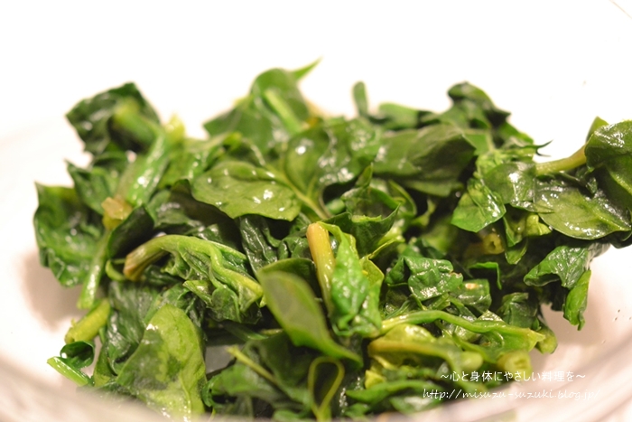 小松菜はレンジでサッと加熱して、