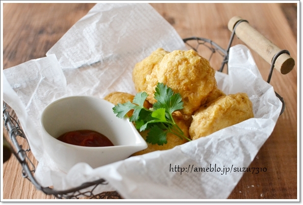 片栗粉でコーティングしているのでふっくらやわらかいナゲットです。