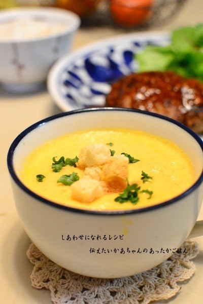 お豆腐入りでなめらかな、人参も一度に摂取できるうれしいポタージュ。