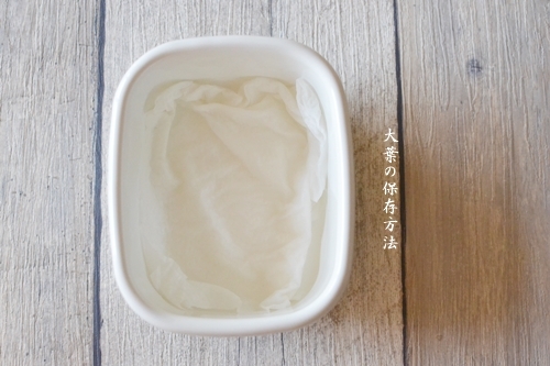 保存したい容器にお水で濡らしたクッキングペーパーを敷き