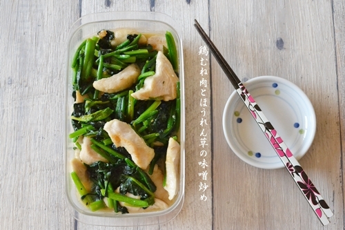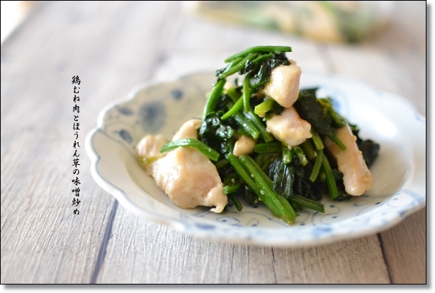 ●鶏むね肉とほうれん草の味噌炒め(新作レシピ)