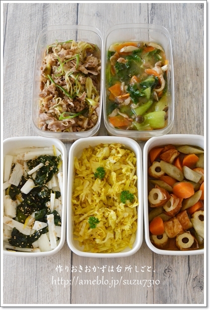 この日の作りおきおかずは、午前中に5品。