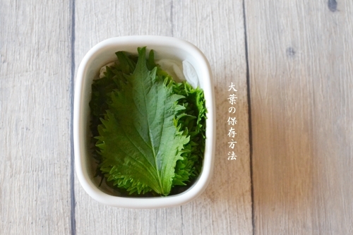 大葉を置いて保存します。