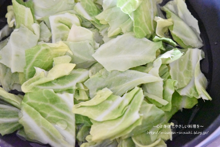 ②鍋に水、春キャベツを入れ強火にかけ沸騰したら、