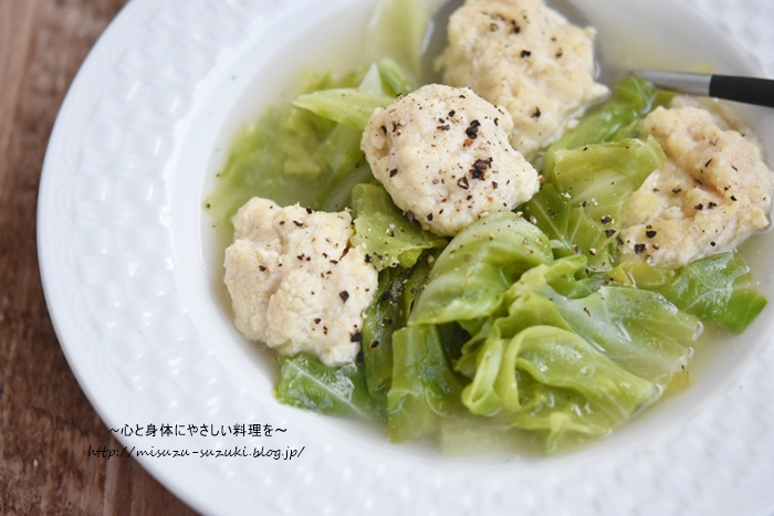 【春キャベツと鶏だんごのやさしいスープ煮】