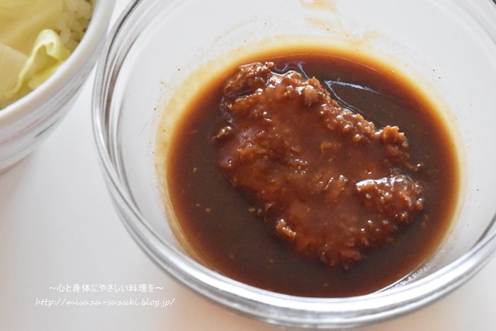 ・今回キャベツは、レンジでしんなりするまで加熱して、軽く水気を絞ったものを使いました。