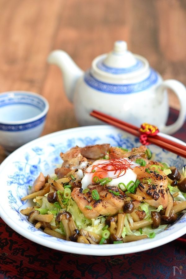 レシピ→【べジ丼レシピ】焼き鳥風キャベツたっぷり鶏玉ベジ丼