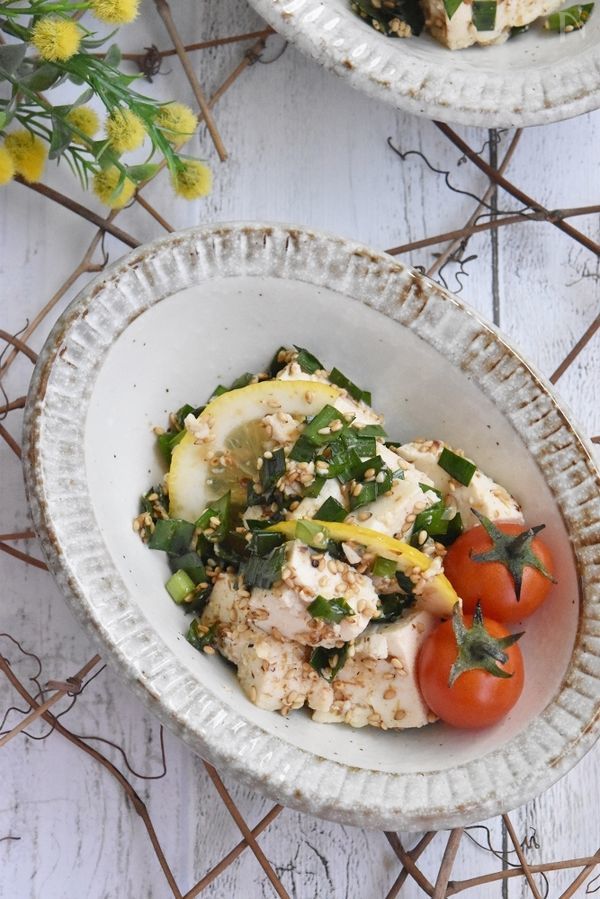 レシピ→火を使わないよ*和えるだけ*豆腐とにらの中華風サラダ