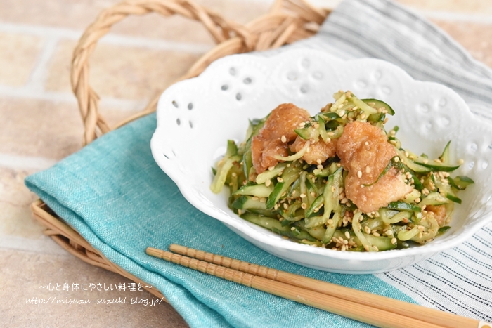 レシピ→10分で完成。きゅうりと油揚げの中華風酢の物