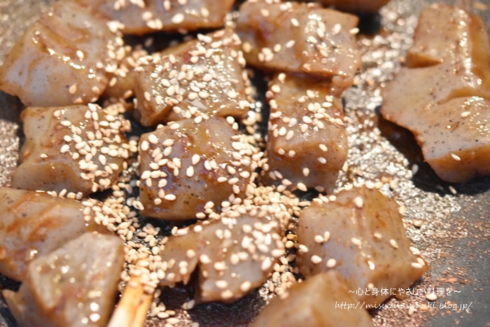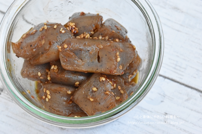 今回のポイントは、こんにゃくを手でちぎる事と、