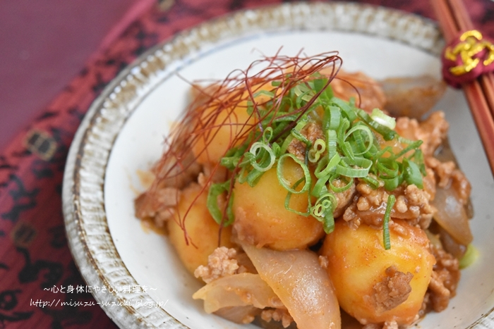 今日のレシピは、じゃがいもとこんにゃくのピリ辛肉味噌です♪