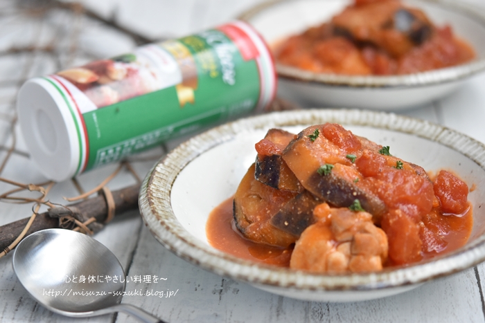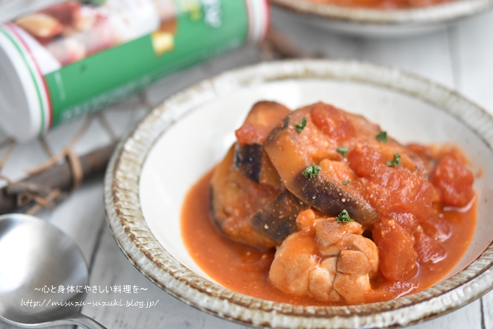 【鶏もも肉となすのトマト煮】