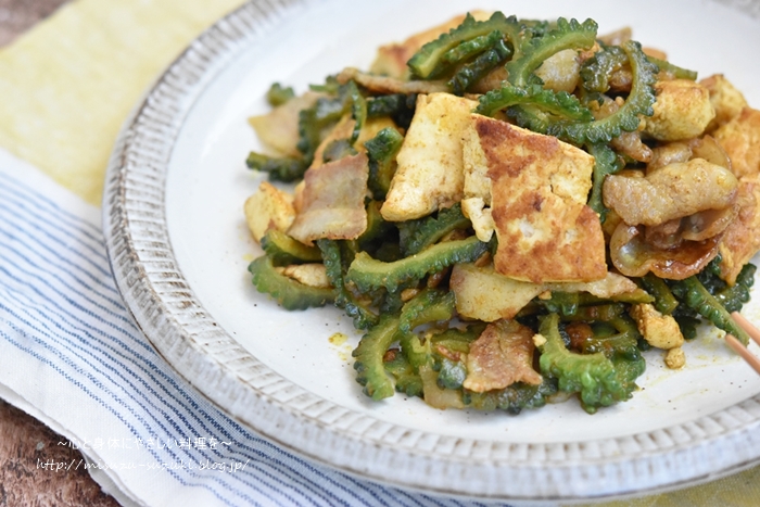 今日のレシピは、カレー味のゴーヤチャンプルーです♪♪