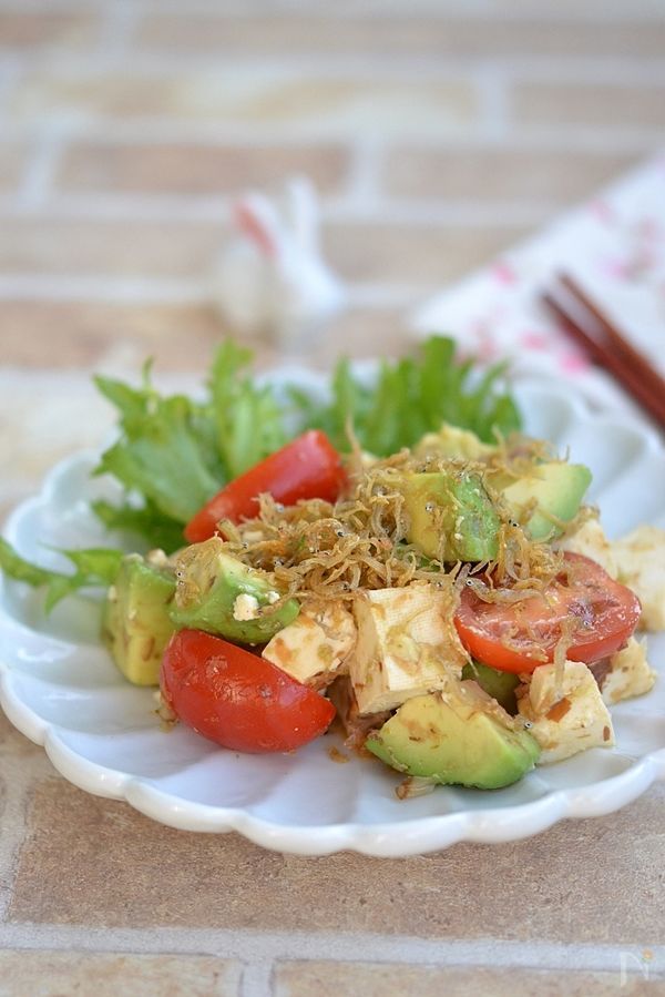 レシピ→時短 簡単 節約 アボカドと豆腐のカリカリしらす和え