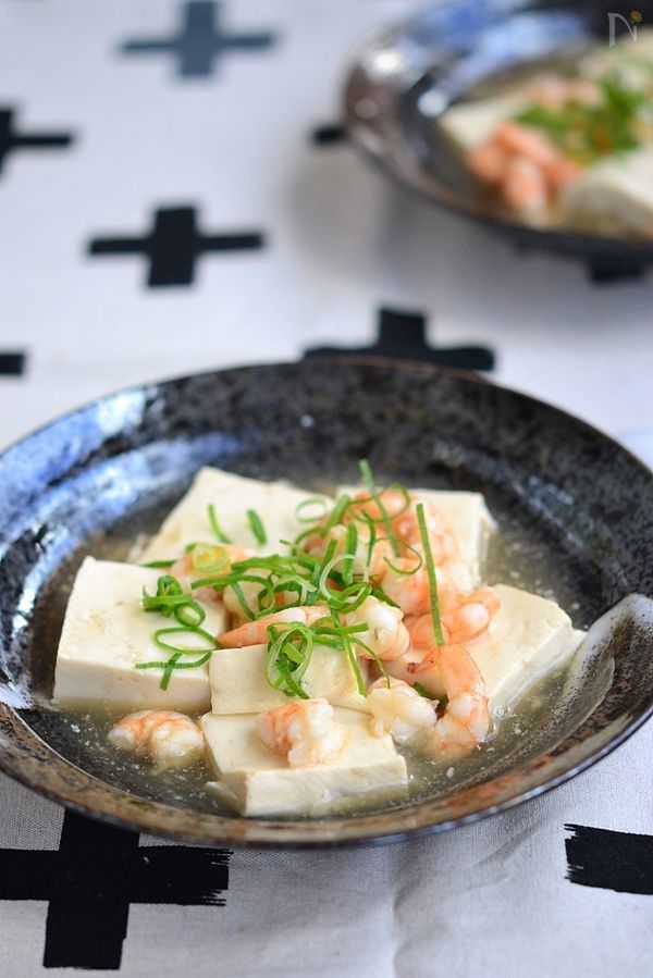 レシピ→胃腸をいたわる 豆腐と海老の鶏だしとろみ煮込み