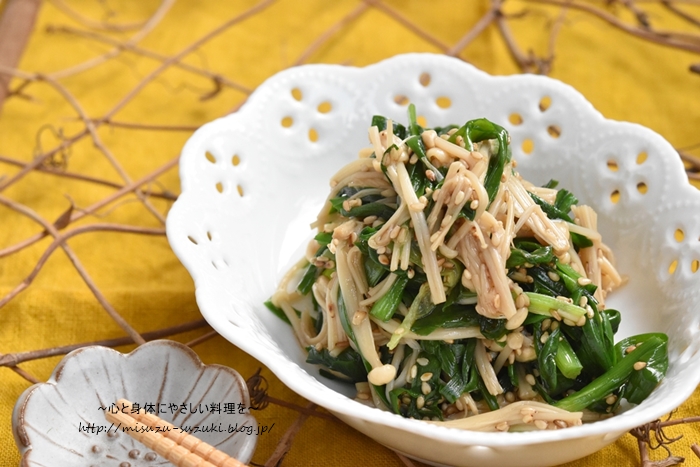 今日のレシピは、にらとえのきのごまナムルです♪♪