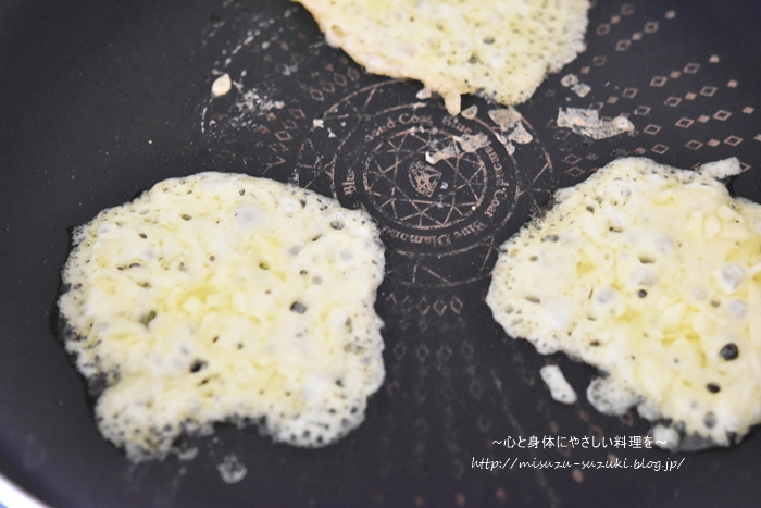 フライパンに広げるのは3枚ずつに分けた方が、作りやすいと思います。