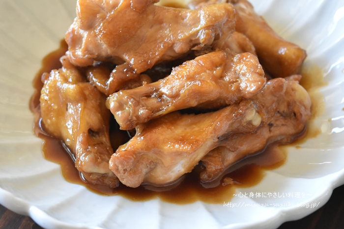 水、生姜、酒で煮込みアクを取りきったら、醤油、砂糖、みりんで煮ました。