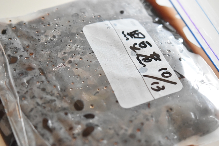 穴が開いていない事を確認して空気を抜き、平らにして冷凍保存で3週間