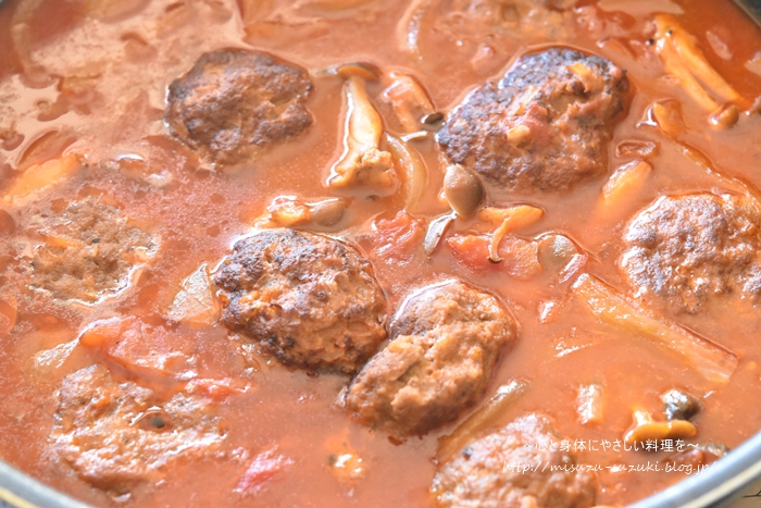 玉ねぎをサッと炒め、トマト缶、お水、砂糖、ウスターソースを加えコトコト煮ます。