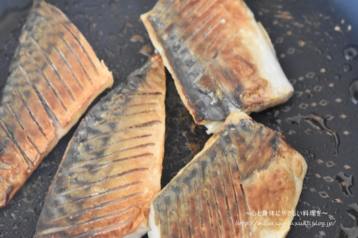 ・塩鯖の皮目は、こんがり焼き色がつくまでしっかり焼いて下さい。