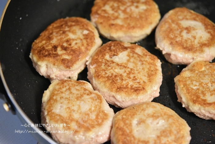 材料を混ぜて形を整え、フライパンで焼くだけ。