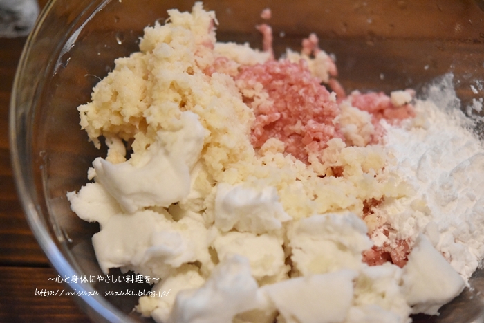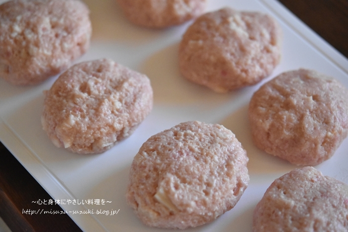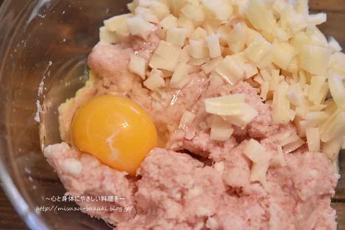 今回のつくねは、豚ひき肉を使い、はんぺんを入れると、旨味が増し