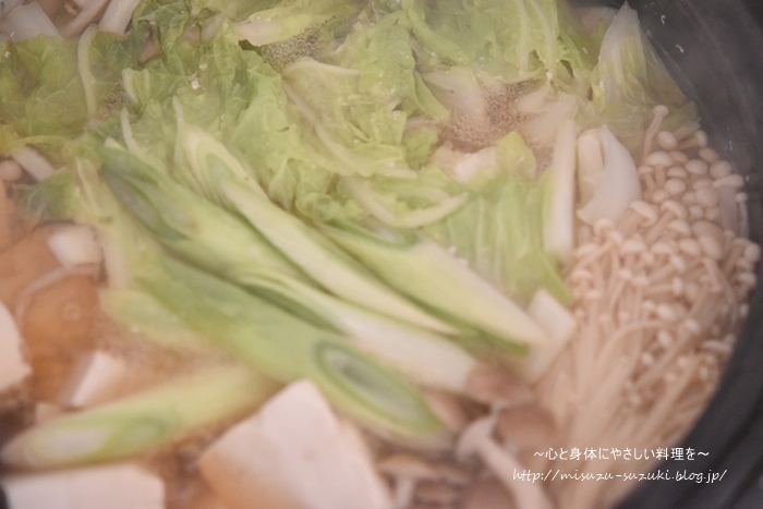 ④土鍋に②と★を入れ中火にかけ、沸騰したら弱火で蓋をして5分煮る。