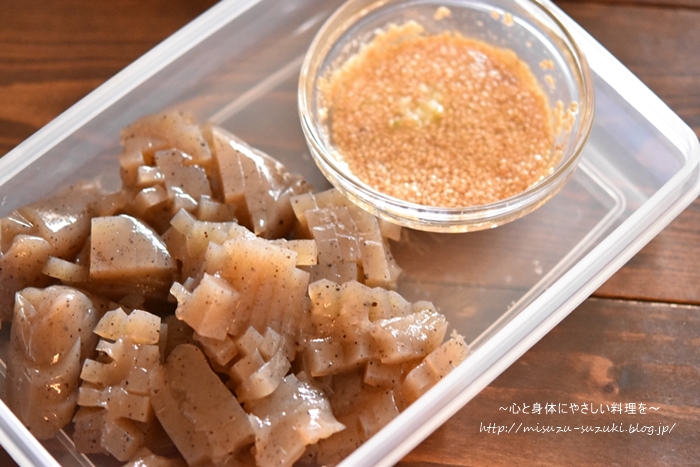板こんにゃくは、下ごしらえがとても大切ですね。