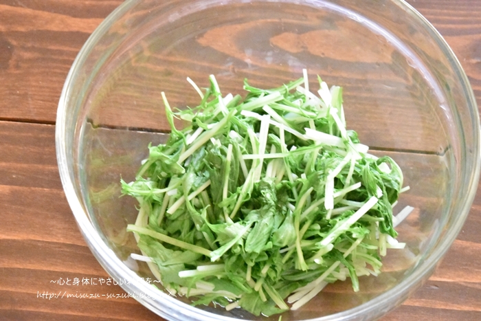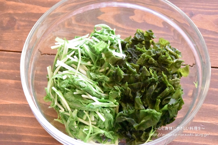 ・水菜とわかめの水気は、しっかり絞って下さい。