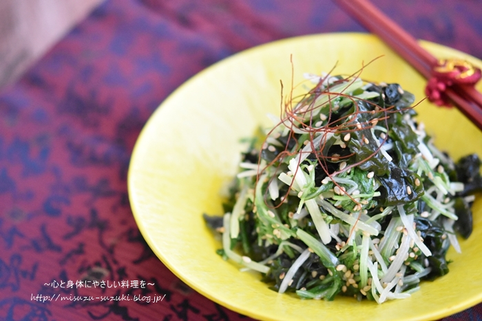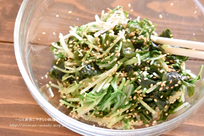 【水菜とわかめのナムル】