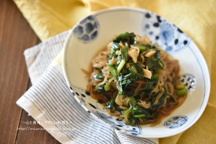 【糸こんにゃくとにらの甘辛生姜炒め】