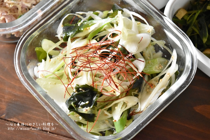 わかめとシャキシャキの長ネギを合わせたさっぱりナムル。