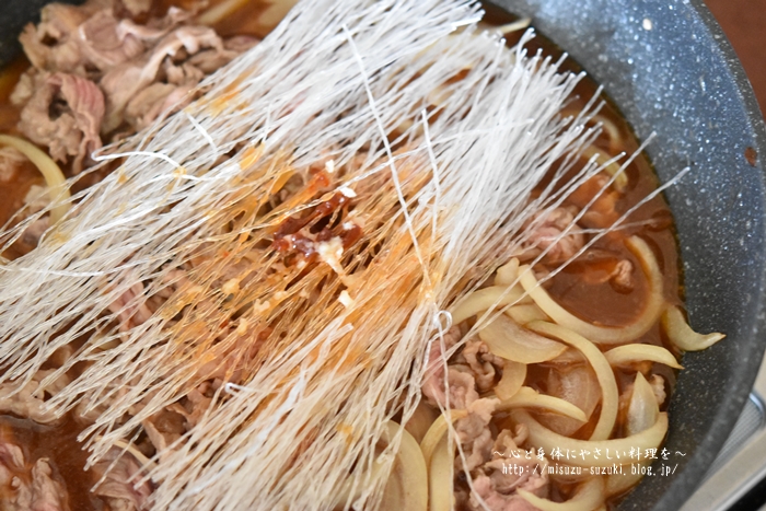 後は調味料と春雨を加えて煮込むだけ。