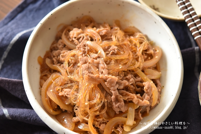 甘い玉ねぎと牛肉の旨味で食が増し、旨味がしっかり染み込んだ春雨はやみつきになる美味しさ。 ご飯との相性は最高でおかわり必須♪ 後お酒のおつまみにもオススメです。
