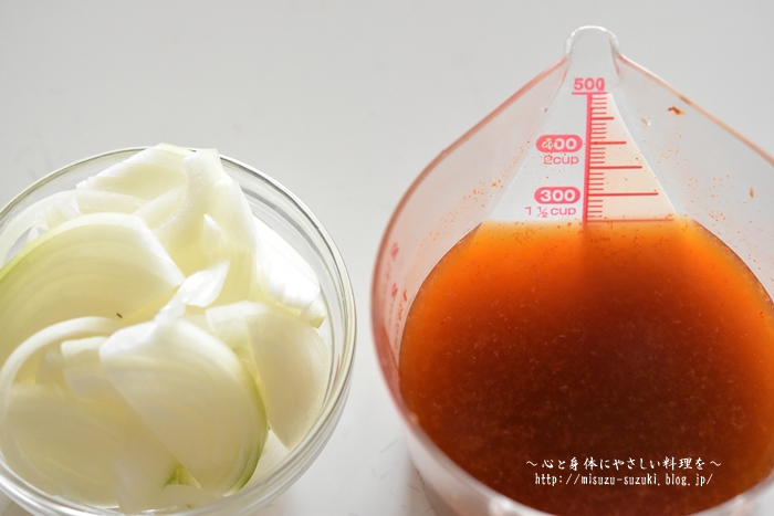 今回のレシピは調味料と一緒に煮込む為、