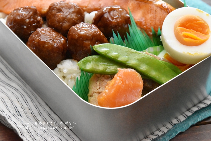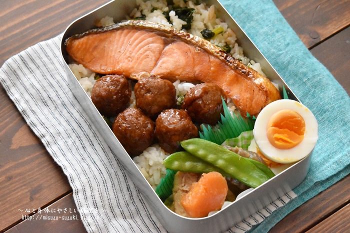 この日のお弁当は、レンジで温めたり混ぜご飯を作っただけなのでラクラクべんとう〜♪
