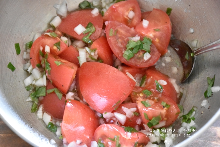 【トマトと新玉ねぎのさっぱり大葉サラダ】