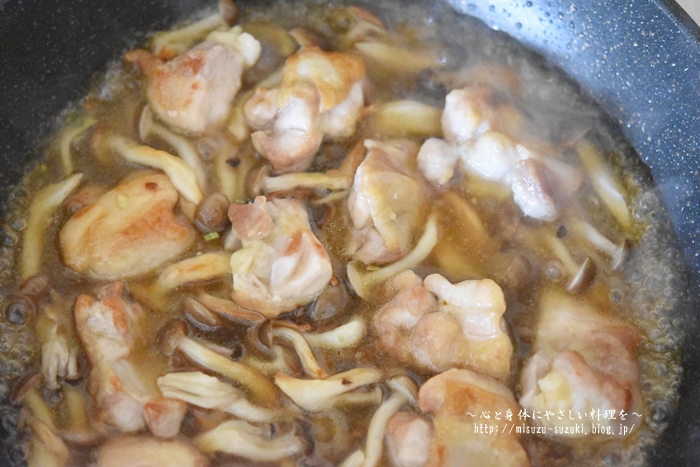 ・しめじを加えて蒸し焼きにする時、時々しめじの上下を返して下さいね。