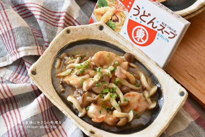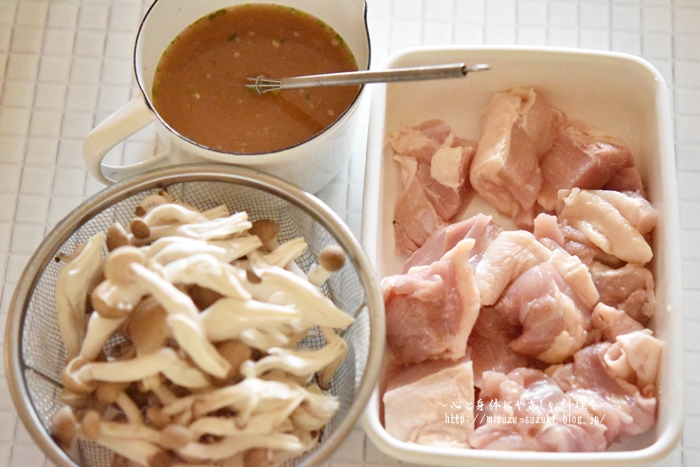 鶏もも肉、しめじ、うどんスープの素が